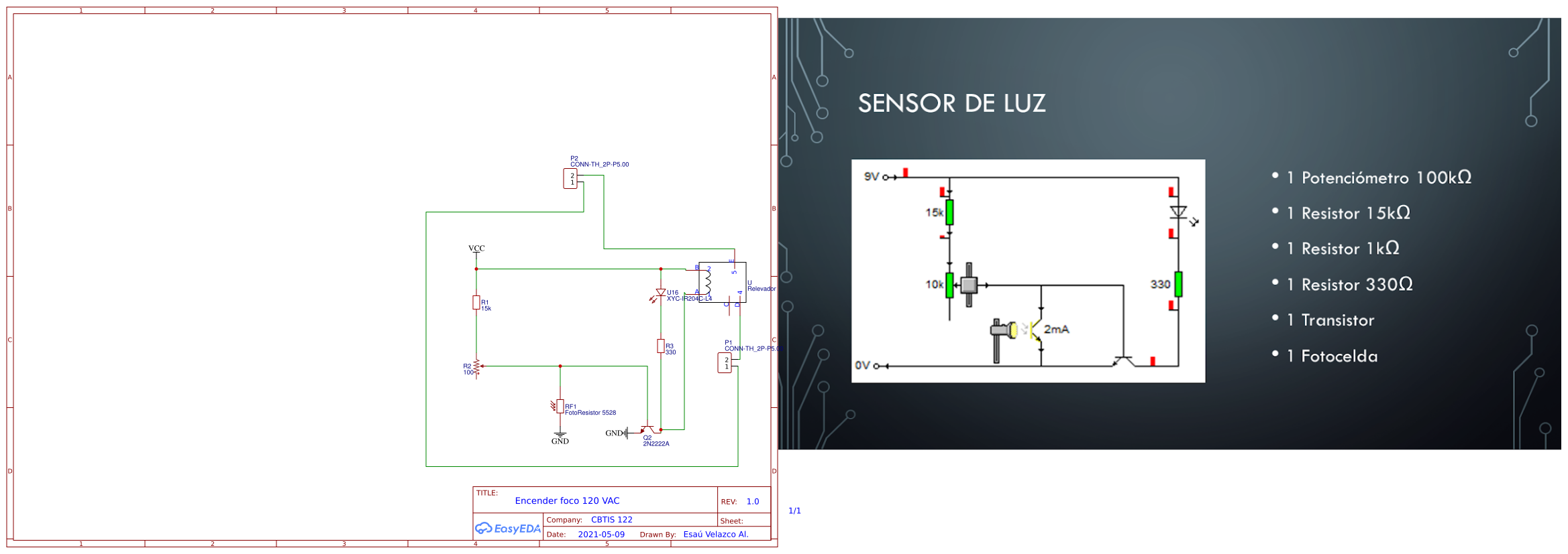 Encender un foco de 120 VAC con circuito sensor de luz usando foto-resistor