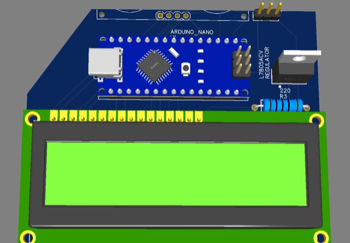 This project features an Arduino Nano-based control system for interfacing with an ultrasonic sensor (HC-SR04), an LCD display (16x2), and a laser module. The ultrasonic sensor measures distances, and the results are displayed on the LCD. A transistor-based circuit (2N3904) is used to control the laser module. A 12V regulator (7805ACV) steps down the power for the components, while a switch allows easy power control from a 12V battery. This setup is ideal for small robotics, distance measurement, or automation projects with real-time feedback.