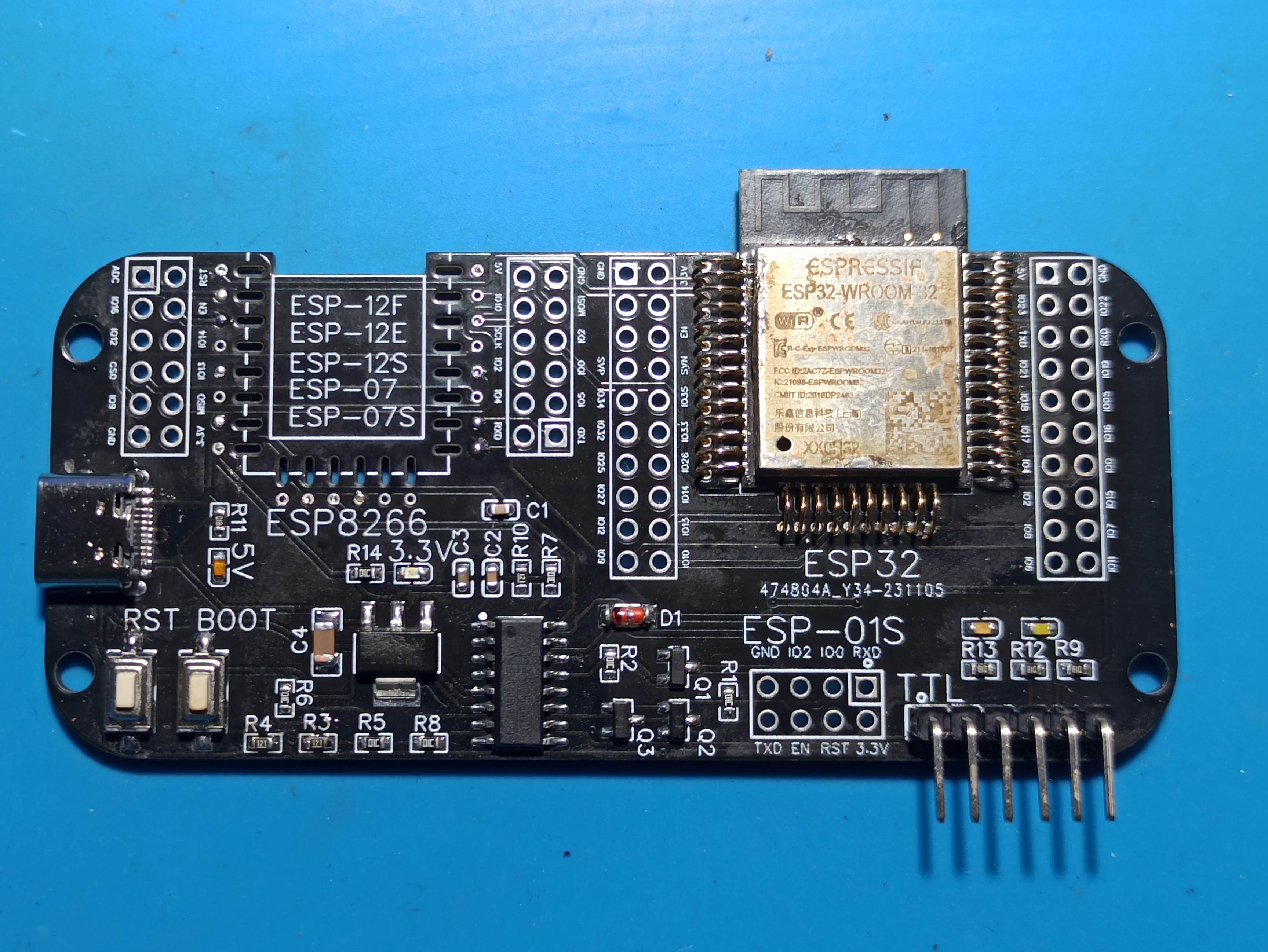 The colored one is the second version. The esp12 pad of the first version PCB was wrong. It has been changed now.