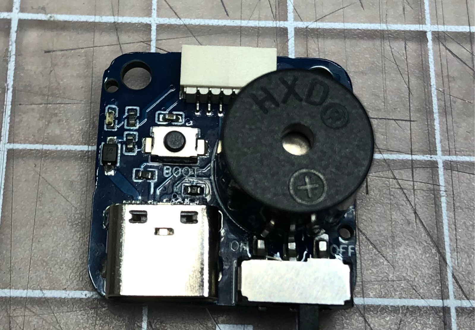 This mini PCB allows to have a USB-C connector separate from a main Flight controller.This PCB also has a buzzer with an ON/OFF switch, a BOOT/DFU button, and an LED power indicator. Connector is a 6-pins JST-SH (1.0mm) and pinout is compatible with matek flight controllers.
